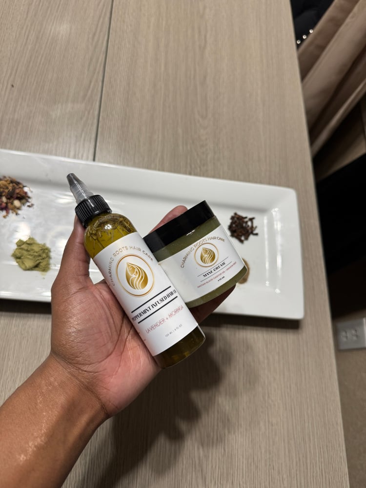 Refresh, strengthen, and protect your hair with our powerful scalp-and-seal duo. Both products are infused with neem & moringa powder, Haitian black castor oil, and coconut oil, to support a healthy scalp environment. This pair is made to strengthen hair strands and lock in long-lasting moisture. Together, they create the ideal foundation for strong, resilient hair, especially for styling & maintaining , protective styles.